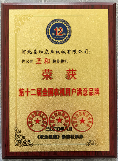 圣和旋耕機(jī)榮獲第十二屆滿意品牌獎牌