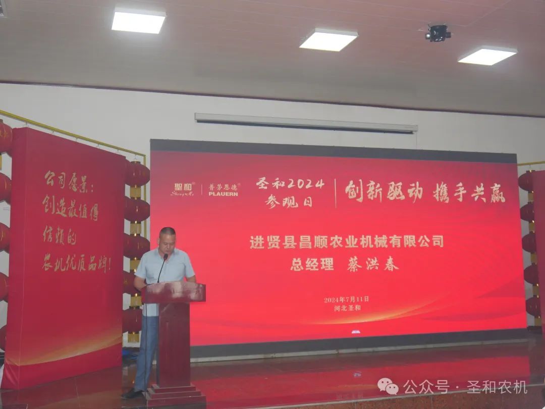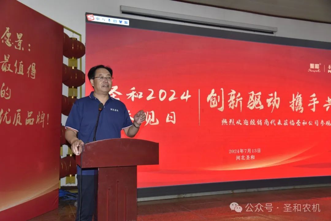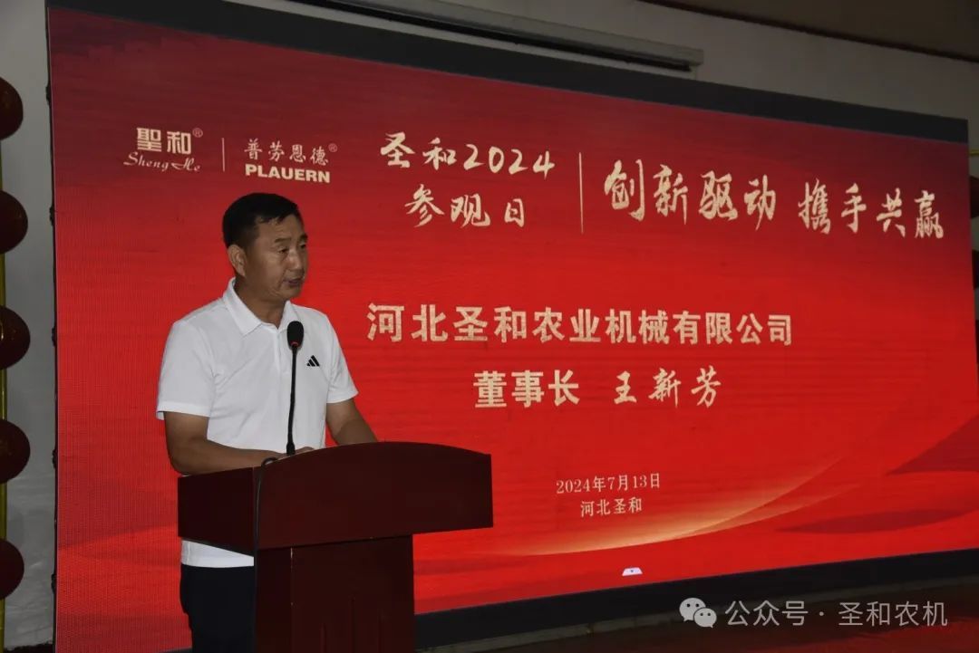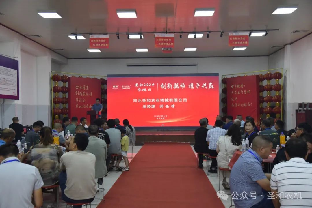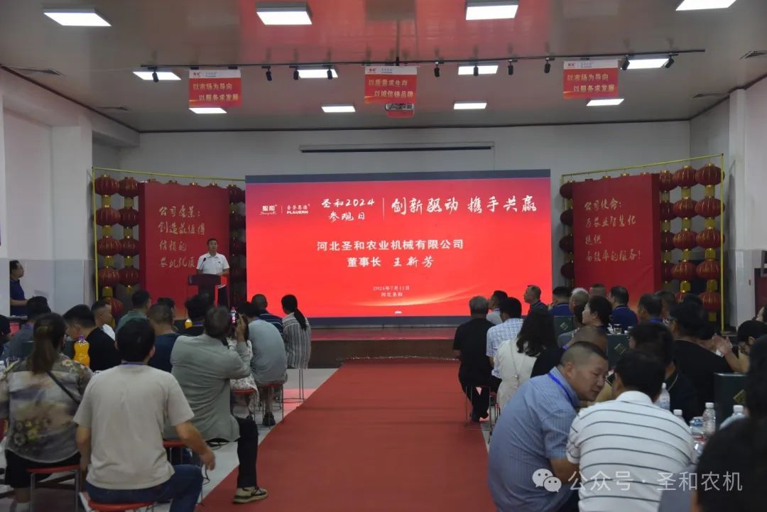 以“創(chuàng)新驅(qū)動,攜手共贏”為主題的“2024年公司參觀日”活動在2024年7月11日—13日,連續(xù)三天在河北圣和農(nóng)業(yè)機械有限公司盛大舉行。400余位來自南方省份的的經(jīng)銷商代表分兩期會師圣和,共襄盛舉。圣和公司歡聲笑語,盛事笙歌,一派節(jié)日喜慶景象。