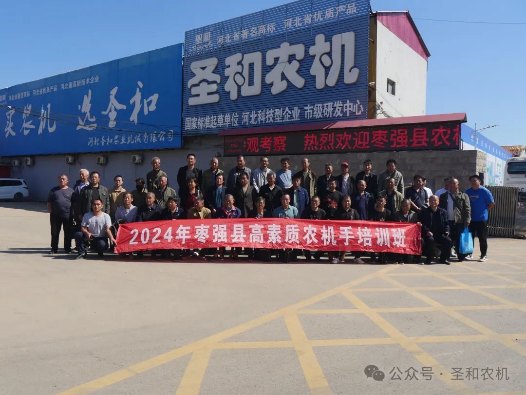 2024年9月22日,棗強(qiáng)縣農(nóng)業(yè)農(nóng)村局2024年棗強(qiáng)縣高素質(zhì)農(nóng)機(jī)手培訓(xùn)班到河北圣和農(nóng)業(yè)機(jī)械有限公司參觀學(xué)習(xí)。圣和公司董事長王新芳攜公司各級(jí)領(lǐng)導(dǎo)熱情接待。