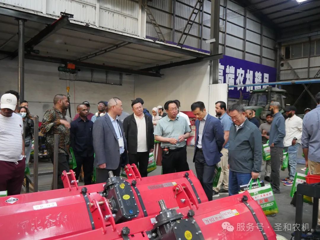 在考察過程中,河北圣和農(nóng)業(yè)機(jī)械有限公司營(yíng)銷管理中心總經(jīng)理郭廣彥、副周經(jīng)理王周廣熱情接待了考察團(tuán),并詳細(xì)介紹了公司的發(fā)展歷程、產(chǎn)品線、技術(shù)創(chuàng)新成果以及在國(guó)際市場(chǎng)上的應(yīng)用情況??疾靾F(tuán)成員們深入生產(chǎn)車間,實(shí)地觀摩了先進(jìn)的農(nóng)業(yè)機(jī)械生產(chǎn)流程,對(duì)各類農(nóng)業(yè)機(jī)械的制造工藝和技術(shù)原理表現(xiàn)出濃厚的興趣。