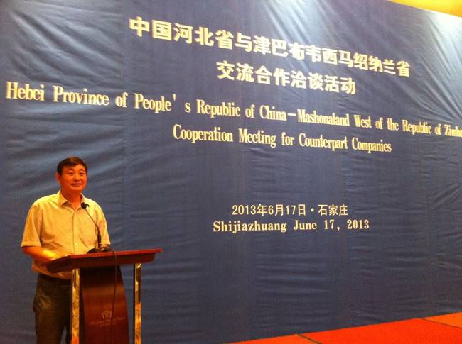 2013年6月17日,在中國(guó)河北省與津馬布韋西馬紹納蘭省交流合作洽談會(huì)上,圣和董事長(zhǎng)王新芳在洽談會(huì)上發(fā)表了講話,并與津巴布韋西馬紹納蘭省省長(zhǎng)納爾遜·薩姆坎格進(jìn)行了交流洽談活動(dòng)。