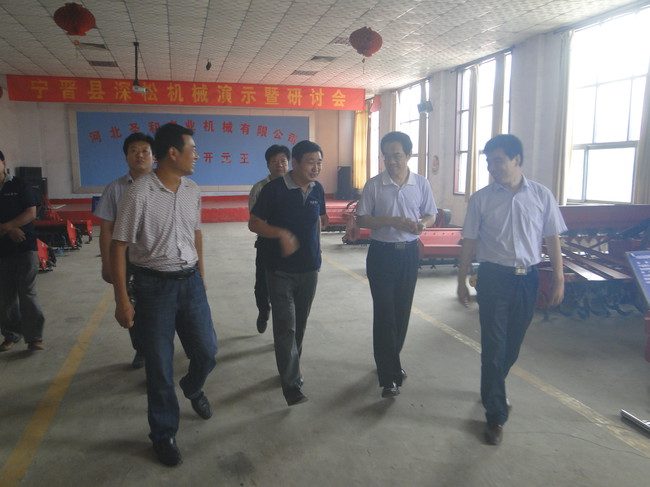 河北寧晉縣人大副主任郝晨鎖、鎮(zhèn)長宋瑞剛等領(lǐng)導(dǎo)一同來我司調(diào)研工作,圣和董事長王新芳就廠部規(guī)模建設(shè)、工作生活情況進(jìn)行了詳細(xì)講解,郝晨鎖副主任對我司發(fā)展、產(chǎn)品及工作情況給予充分肯定,并希望我司再接再厲,促進(jìn)農(nóng)業(yè)機械再上新臺階。
