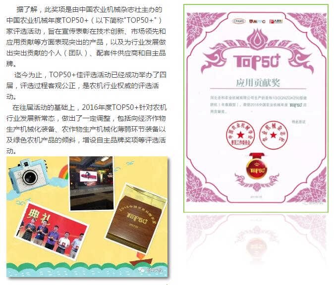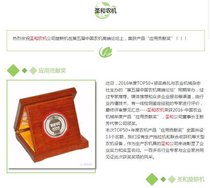 熱烈慶祝圣和農(nóng)機喜獲--中國農(nóng)機產(chǎn)品“應用貢獻