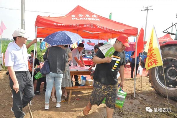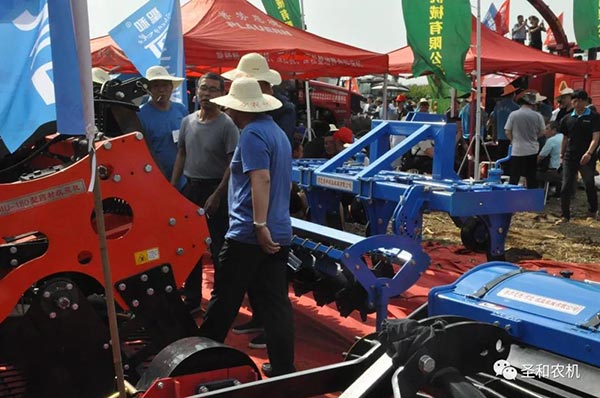 其中五款展示機具:1SS-280A型深松機、1GQNM-230型雙軸滅茬旋耕機、4U-170型藥材收獲機、1JQ-200型秸桿切碎還田(圣和)、1GKNJG-250A型高箱框架旋耕機(普勞恩德)。