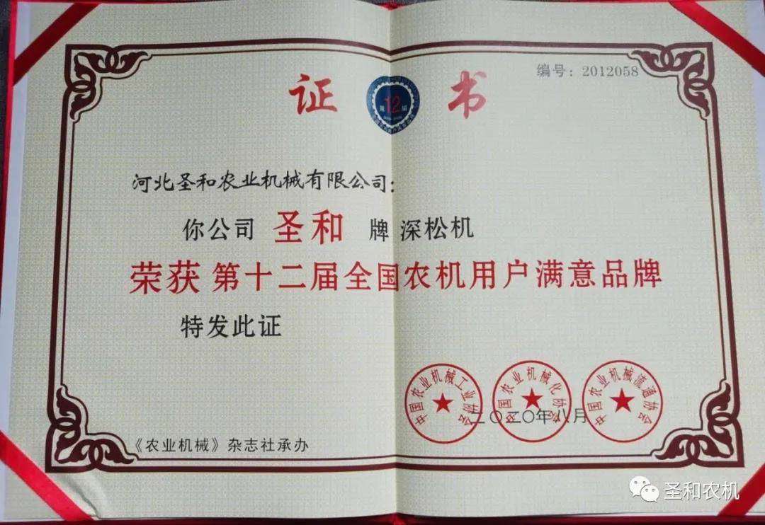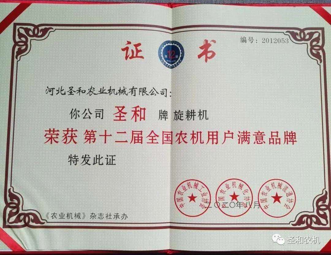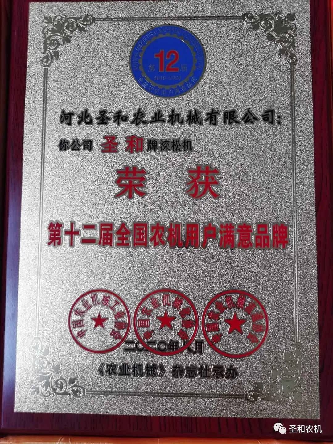 全國農(nóng)機(jī)用戶滿意品牌——圣和再獲大獎(jiǎng)!