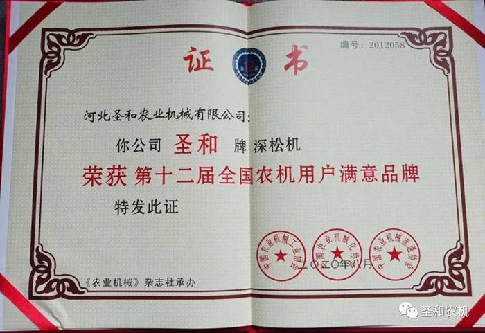 四、全國農機用戶滿意品牌——圣和再獲大獎!