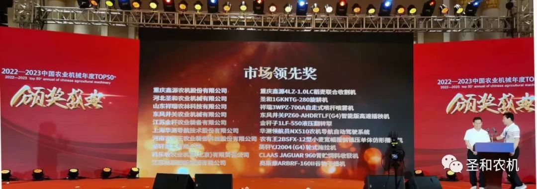 昨日,喜報又傳,在由中國農(nóng)業(yè)機(jī)械工業(yè)協(xié)會、中國農(nóng)業(yè)機(jī)械學(xué)會、《農(nóng)業(yè)機(jī)械》雜志社共同舉辦的第十一屆中國農(nóng)業(yè)機(jī)械高端論壇暨2023中國農(nóng)業(yè)機(jī)械年度TOP50+頒獎典禮上,河北圣和農(nóng)業(yè)機(jī)械有限公司在連續(xù)多年獲得TOP50+年度大獎的基礎(chǔ)上,“圣和1GKNTG-280旋耕機(jī)”憑借遙遙領(lǐng)先的市場表現(xiàn)與客戶高度認(rèn)可的可靠品質(zhì),實力加冕最具重量級獎項——“市場領(lǐng)先獎”,充分彰顯了圣和旋耕機(jī)家族的冠軍實力,行業(yè)地位再獲認(rèn)可。