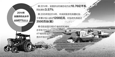 61%的農(nóng)機化率意味著我國農(nóng)業(yè)生產(chǎn)方式已實現(xiàn)由人力畜力為主向機械作業(yè)為主的歷史性跨越。2004年底,我國農(nóng)機化發(fā)展史上第一部法律《農(nóng)業(yè)機械化促進法》正式實施。此后農(nóng)機化發(fā)展迎來了黃金十年,中央財政農(nóng)機購置補貼10年累計投入超過1200億元,補貼農(nóng)機具超過3500萬臺(套)。農(nóng)機化水平增幅超過法律實施之前35年的總和,農(nóng)機工業(yè)總產(chǎn)值從854億元增加到3571億元。