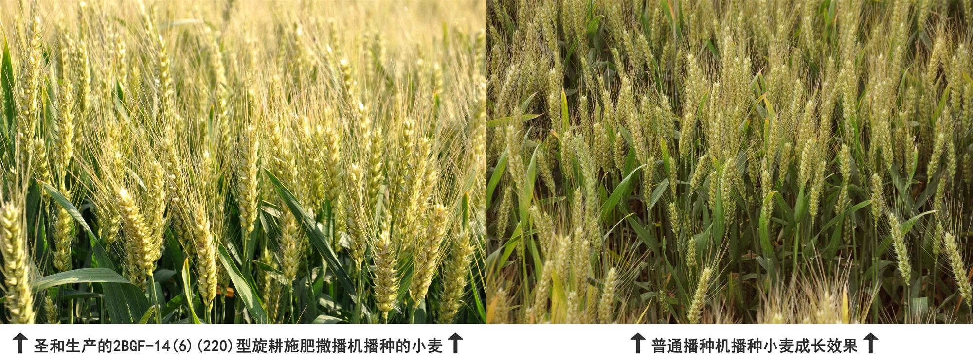 可眼下畢竟不是麥田怪圈,這即將收割在握的大片倒伏麥地,看著誰心里也沒個底了,咱們農(nóng)民朋友的心無不哇涼哇涼的,恰巧今年在圣和新廠區(qū)的西邊大約五十畝的田地,用圣和公司生產(chǎn)圣和2BGF-14(6)(220)型旋耕施肥撒播機種植的小麥和普通田地的種植時間等各方面無異,今日小編特意前往觀看,這么大片的麥田卻與四周形成鮮明的對比,一株株精神抖擻,在微風(fēng)的吹拂下金色的麥浪跌跌起伏。小編特意對比發(fā)現(xiàn),使用圣和2BGF-14(6)(220)型旋耕施肥撒播機種植的小麥麥穗個個飽滿勻稱,堅挺的在肥沃的田地里等待著成熟豐收,絲毫沒有受此前狂風(fēng)暴雨的侵襲,讓過路的行人忍不住多看兩眼,好奇的打問為什么這家的小麥安然無恙!