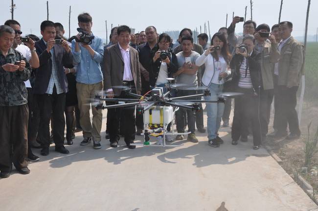 4月29日,我公司與西安鯤化航空科技有限公司聯(lián)合研制的“無人植保飛機(jī)”與河北威遠(yuǎn)生化有限公司達(dá)成共識(shí),在藁城展開了一次“無人植保飛機(jī)實(shí)地藥物防治試驗(yàn)示范”現(xiàn)場(chǎng)會(huì)。到場(chǎng)參觀的有農(nóng)業(yè)局局長(zhǎng)趙勝哲、省植保站楊炎杰、市植保站王維蓮、圣和董事長(zhǎng)王新芳、威遠(yuǎn)生化農(nóng)藥總經(jīng)理范朝輝,農(nóng)業(yè)局局長(zhǎng)等領(lǐng)導(dǎo)在觀摩機(jī)具作業(yè)后,給予了高度評(píng)價(jià)。