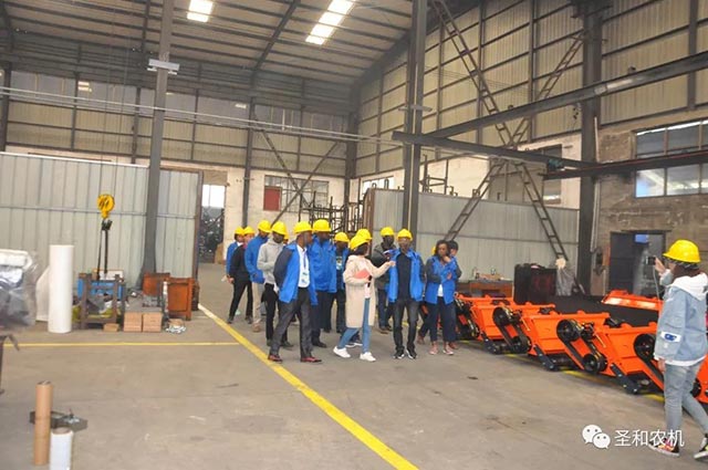 之后,參觀車間生產(chǎn)制造工藝,在過程中講解每一個生產(chǎn)制作環(huán)節(jié),對旋耕機、還田機等多種機具的工作原理、效果與土地適用性作出講解,參觀完畢后客人對圣和公司生產(chǎn)工藝與產(chǎn)品給予高度肯定。