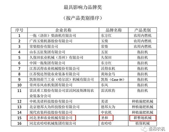“圣和"榮獲最具影響力品牌獎(jiǎng)項(xiàng)|全國農(nóng)機(jī)行業(yè)耕整地機(jī)械類唯一獲獎(jiǎng)企業(yè)!